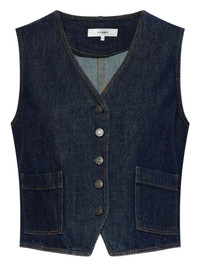 buttoned pocketed denim waistcoat Highlights - Dark blue - V-neck - Button fastening - Two front patch pockets - Sleeveless - Topstitch detailing Imported Composition Cotton 100% Washing instructions Read Manufacturer Guidelines