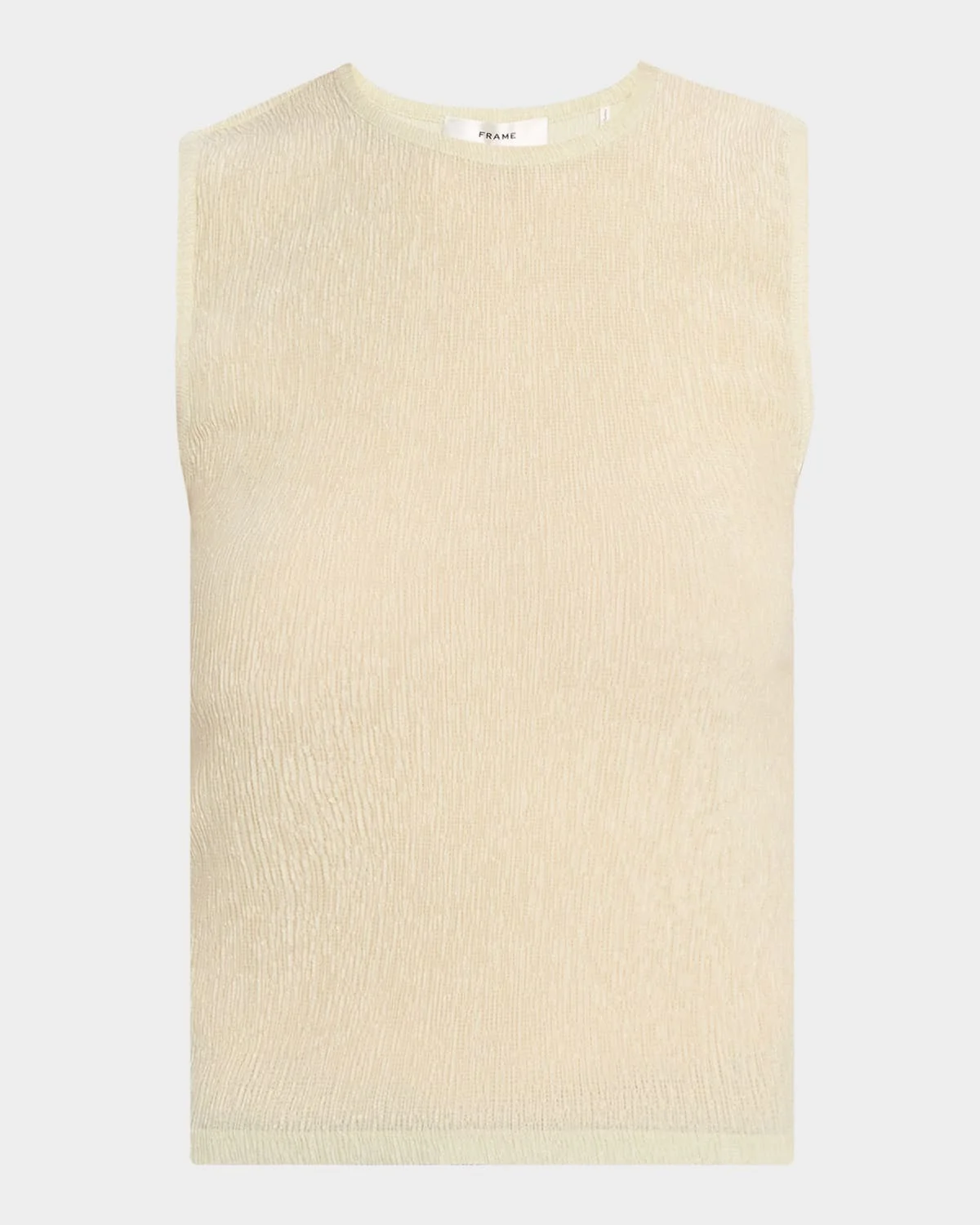 FRAME tank top crafted from textured knit that adds dimension & nbsp; Crew & nbsp;neckline Sleeveless Slim fit Hem sits at the hip Pullover style & nbsp; Cotton Imported SIZE & FITModel measurements: 5 & apos;10" tallModel is wearing a US size 4/Small