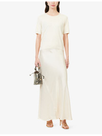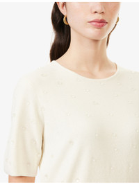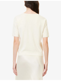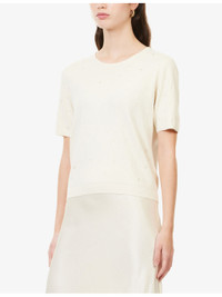 PRODUCT DETAILS - FRAME silk and cotton jumper - 55% silk, 45% cotton - Regular fit, round-neck, short sleeves, droplet applique at front and sleeves, all-over fine-knit pattern, ribbed trims - Hand wash cold - True to size - Model is 5ft 10in/1.78m and wears a size small - Midweight, stretchy Ref: R04538812