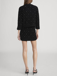 A modern take on the classic black mini, this plush, knit skirt is embellished with pearls and rhinestones throughout. Pulls on effortlessly without a closure. Pair with The Embellished Jacket for the full look. DETAILS - Dry Clean Only - Self: 90% Wool/10% Nylon/Combo: 100% Merino Wool - 13.75" Long From Waist - WP26KSK001-BLK