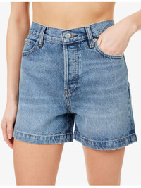 PRODUCT DETAILS - FRAME denim shorts - 100% cotton - Exposed button and concealed button-fly fastening at front - Regular fit, high-rise, belt loop, five pockets, faded wash - Machine wash at 30°C - Made in Turkey - True to size - Size 26: rise 12in / 32cm, inside leg 3.5in / 9.5cm, leg opening 24in / 61cm - Model is 5ft 10in/1.78m and wears a size 26 - Lightweight, slight stretch Ref: R04595973