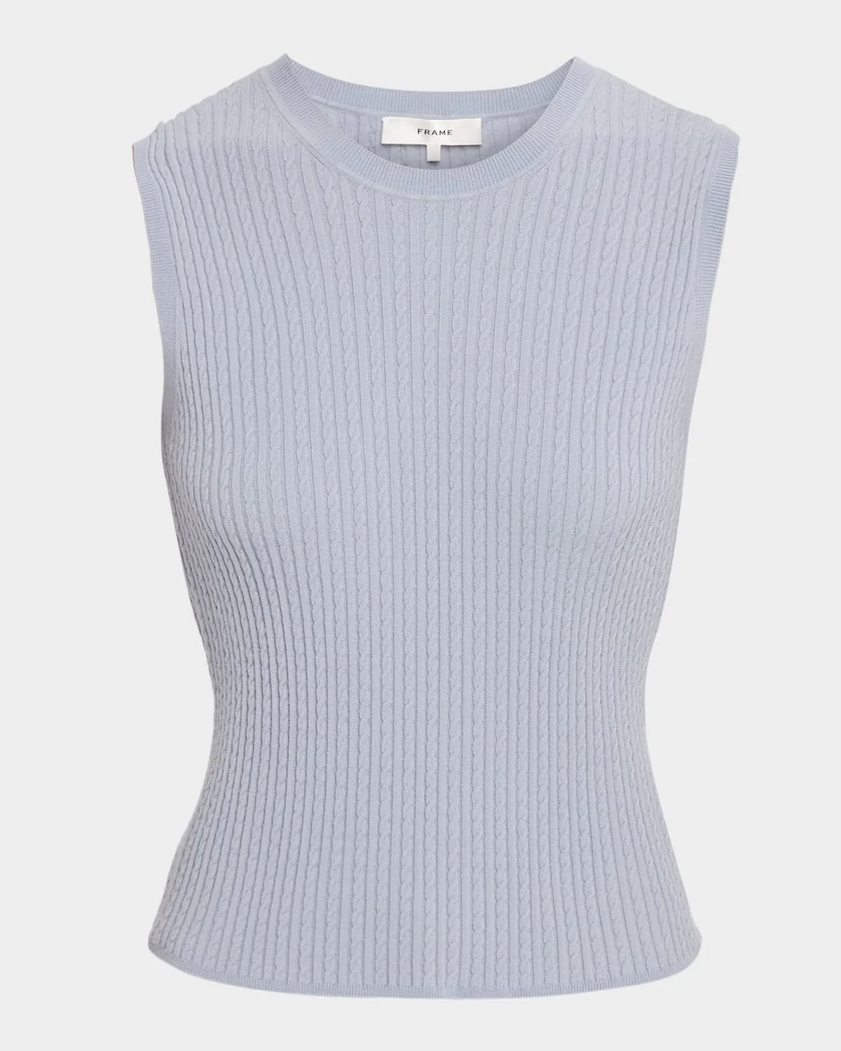 - FRAME fine cable-knit top - Crew neckline - Sleeveless - Classic fit - Hem sits at the hip - Pullover style - Viscose/polyester - Dry clean - Imported