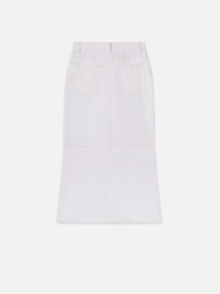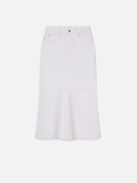 A maxi skirt with a twist—The Flounce Skirt features a high rise and slim silhouette that hits at the ankle, but for added drama breaks into a slight flare just above the knee for a feminine take on the denim maxi. Materials & Care Dry Clean Only 100% Cotton 36.0" Long From Waist WP25DSK003-AUCL