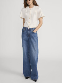 The Flutter Cardigan is crafted from a luxe wool-cashmere blend with a loose rib knit, featuring flutter sleeves and gold knot buttons—designed to be worn as a top or layered as a cardigan. DETAILS - Dry Clean Only - 70% Wool/20% Nylon/10% Yak - 19.5" Long From Shoulder - WP26KSW025-CREA