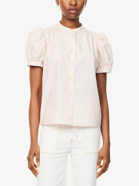 The Gathered Puffed-Short-Sleeves Cotton-Poplin Top