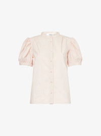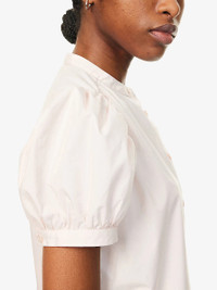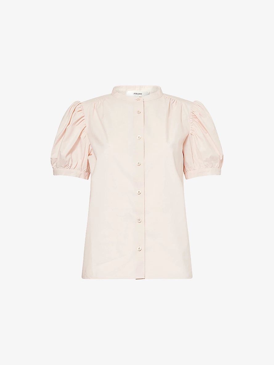 PRODUCT DETAILS - FRAME cotton-poplin top - 100% cotton - Exposed button fastening at front - Relaxed fit, round neck, puffed short sleeves, buttoned cuffs, flared hem - Machine wash cold - True to size - Size small: length 22in / 57cm - Model is 5ft 10in/1.78m and wears a size small - Lightweight, stretchy Ref: R04421408