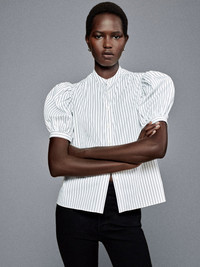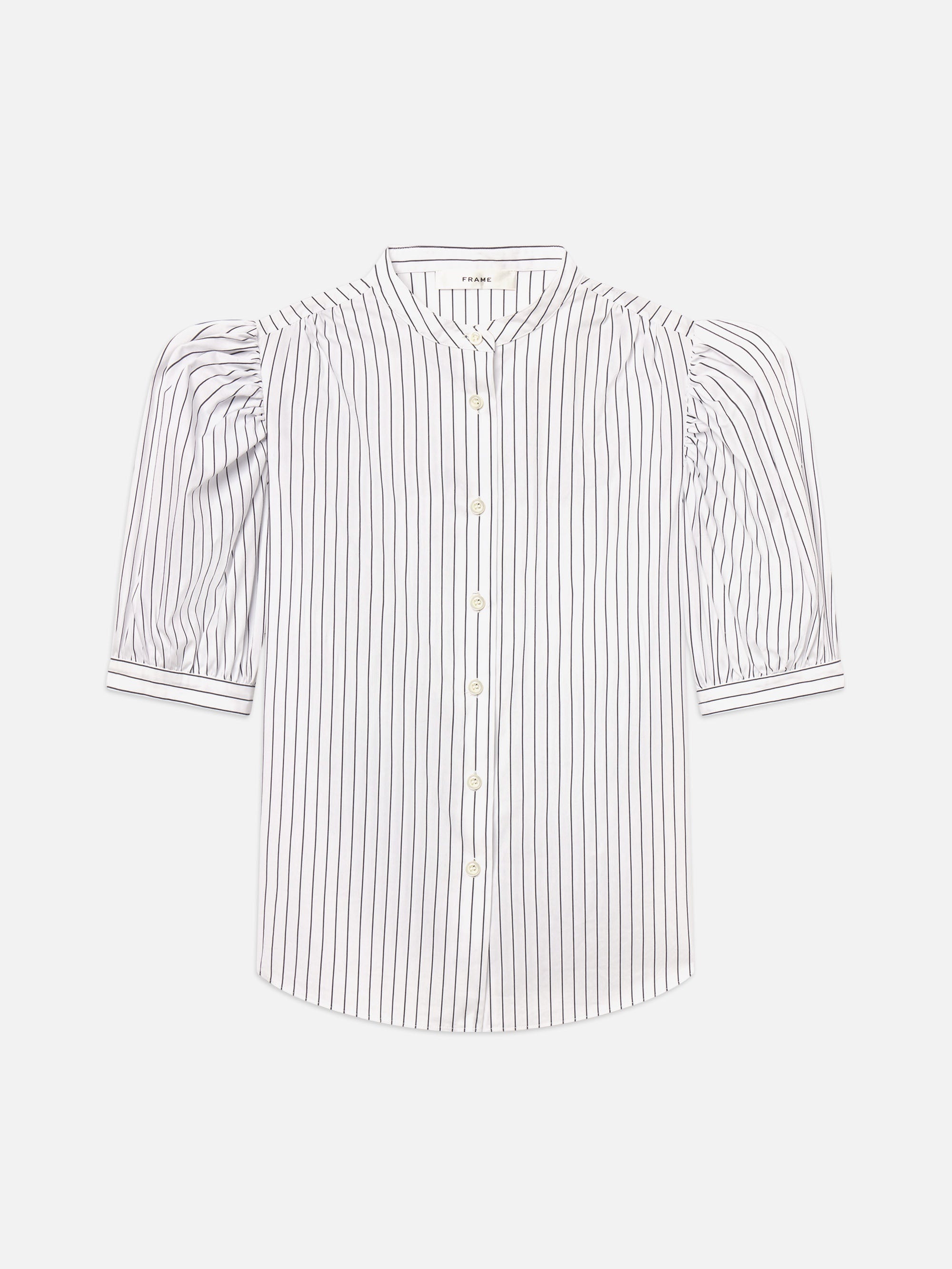 Quintessentially FRAME, The Gathered Top has puff sleeves enhanced by gathered detailing. Feminine, yet polished, the blouse also features a stand collar. Materials & Care Machine Wash Cold 72% Cotton/26% Nylon/2% Spandex 24" Long From Shoulder WS25WBL038-NAMU