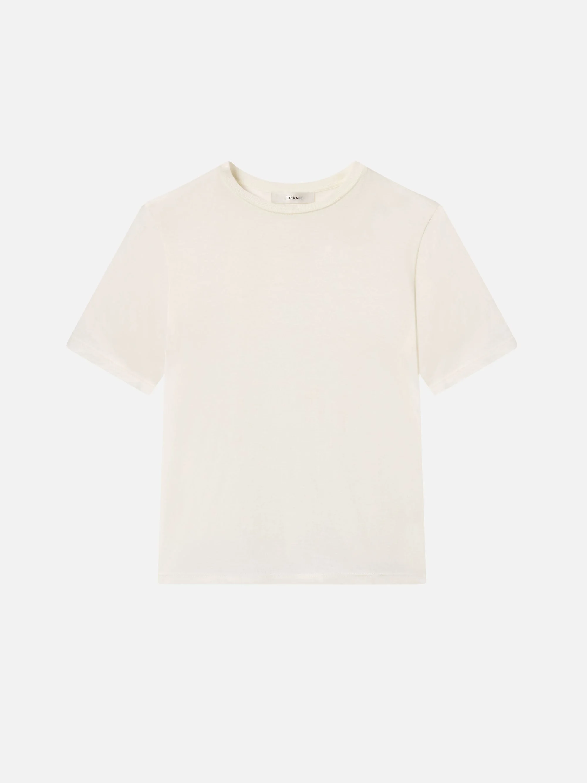 Spun from a cotton-cashmere blend, this crewneck tee is soft with a sleek drape. A polished essential that completes the minimalist uniform. DETAILS - Dry Clean Only - 95% Cotton 5% Cashmere - 21.125" Long From Shoulder - WP26JKT033-CREA