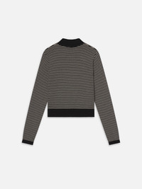 Look smart. This 100% cotton knit takes cues from campus classics, reimagined with a polo collar and chic black-and-white stripes. The contrast trim, fine ribbed texture, and FRAME-branded buttons keep things A+. Materials & Care Dry Clean Only 100% Cotton 19.5" Long From Shoulder WE25KSW040-BKMU