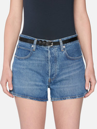 Your new spring staple. This short carries the same easy fit of our bestseller, hanging from a mid-rise waist to a mini hem with the perfect amount of coverage. Flattering and comfortable, this vintage-inspired short has a distressed, pre-loved feel with a medium blue wash. Materials & Care Mid Rise Fit Machine Wash Cold 100% Regenerative Cotton 10.5" Front Rise/3" Inseam/25.5" Leg Opening 4000210-OVDR