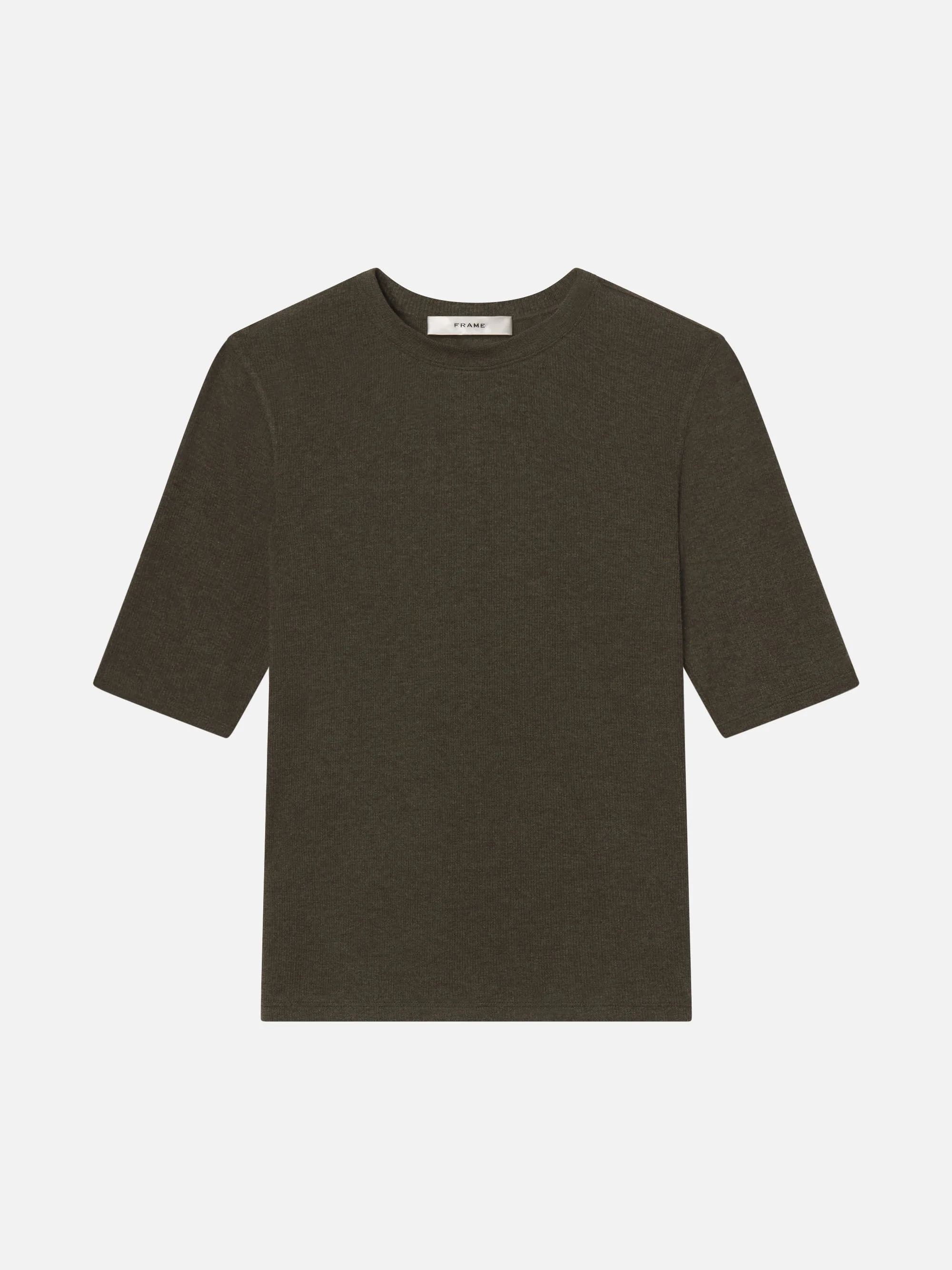 An easy t-shirt silhouette designed with a classic crew neckline, short sleeves, and a relaxed fit. Crafted from a ribbed modal blend for ultra-stretch comfort and the ultimate flattery on body. Materials & Care Machine Wash Cold 96% Modal/4% Spandex 21" Long From Shoulder WF25JKT021-RCMH