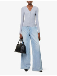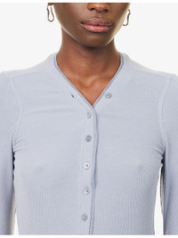 PRODUCT DETAILS - FRAME modal-jersey top - 96% modal, 4% elastane - Slim fit, V-neckline, long sleeves, ribbed jersey texture - Machine wash cold - True to size - Model is 5ft 10in/1.78m and wears a size small - Lightweight, stretchy Ref: R04509219