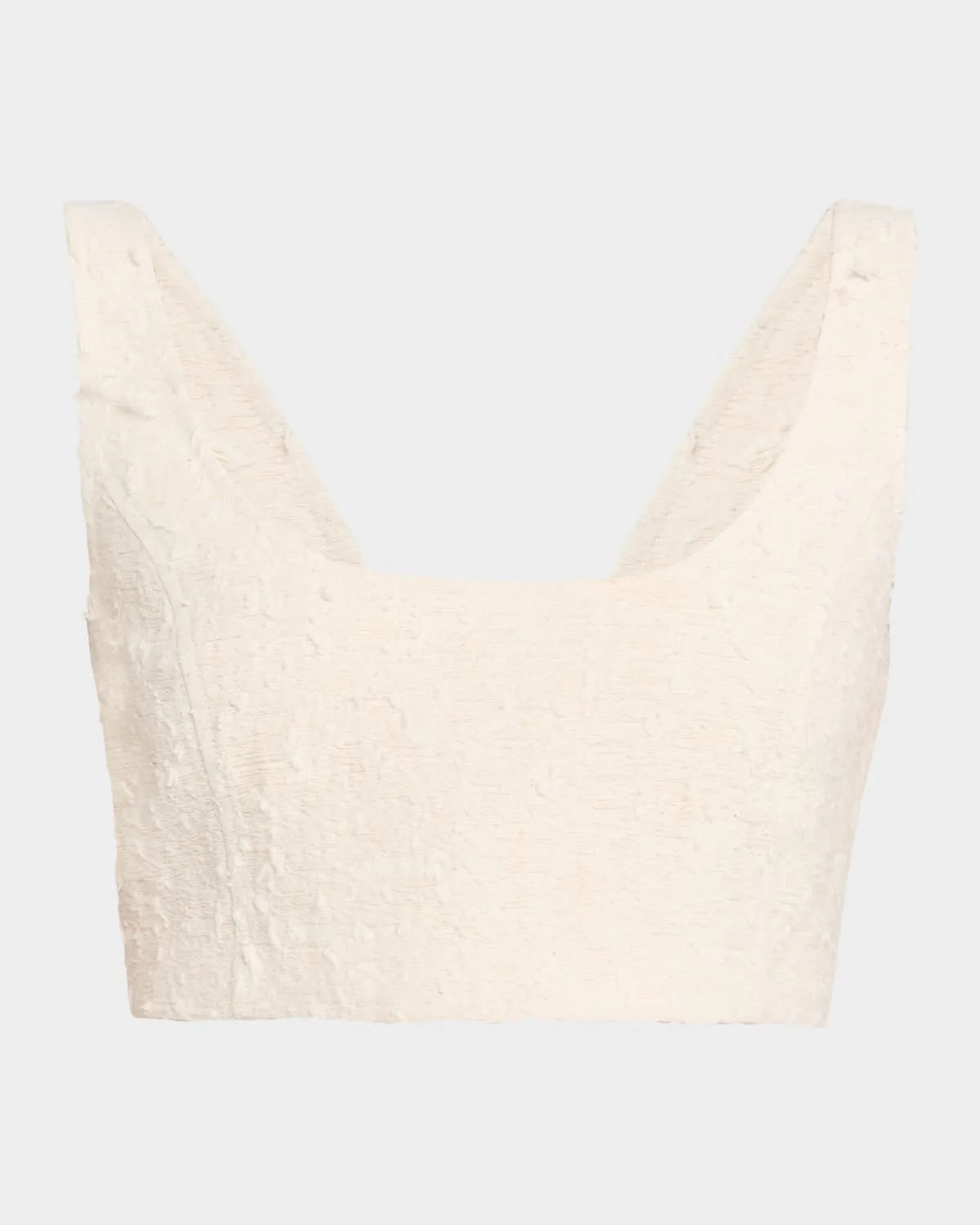 - FRAME "The Jacquard Top" in textured jacquard-denim - Scoop neckline - Sleeveless - Cropped fit - Invisible side zip - Cotton - Dry clean - Imported