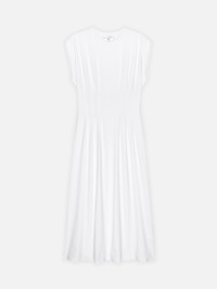Please note: This is a sale style. A $12 restocking fee applies for any return that includes Sale styles, deducted from the refund total. Crafted from 100% organic cotton, the Jersey Nipped Dress features soft structure through the bodice with precise pleating that creates shape without cling. Finished with a scalloped hem for a feminine twist on an everyday silhouette. Materials & Care Machine Wash Cold 100% Organic Cotton 50" Long From Shoulder WS25JDR004-WHT