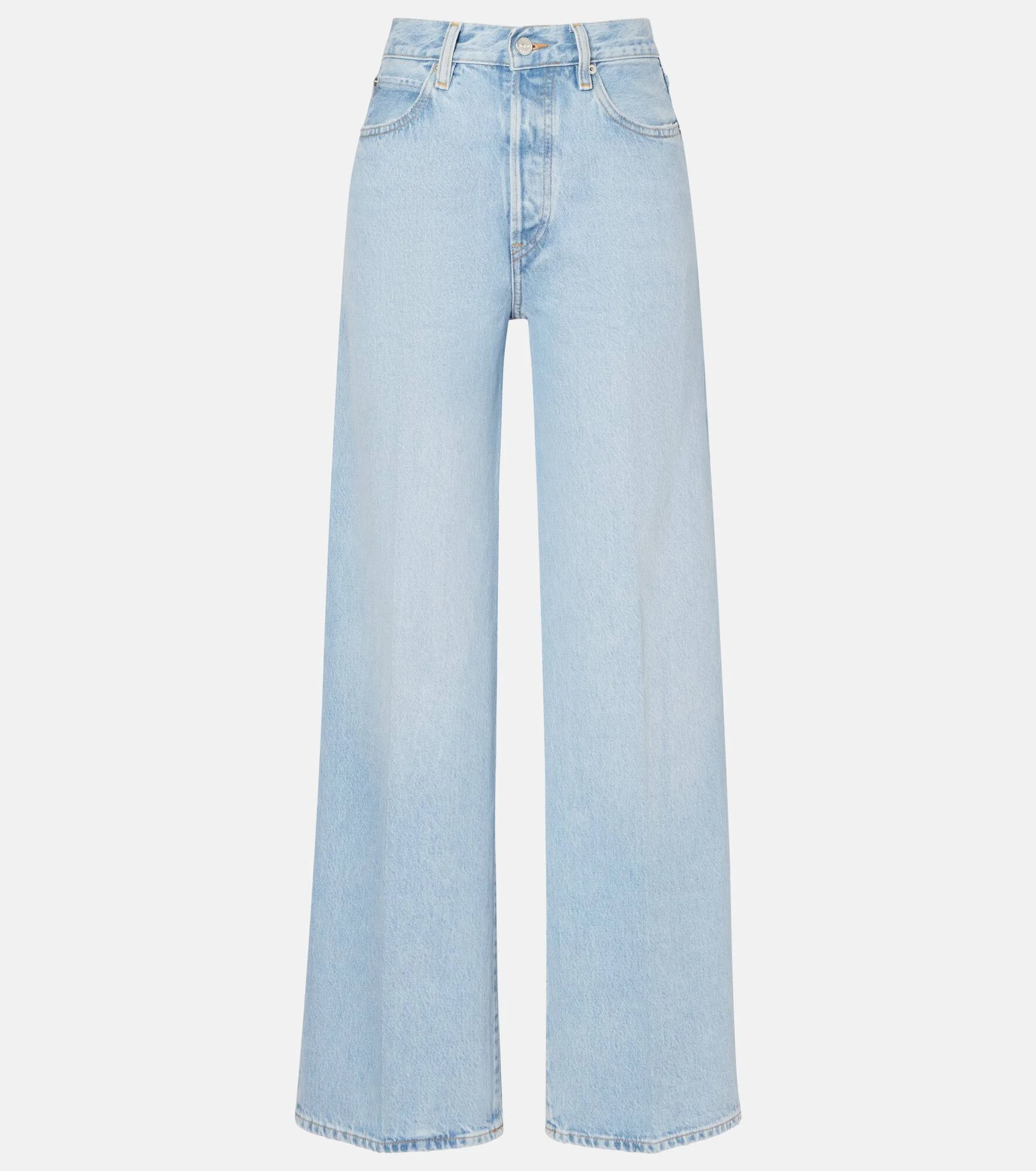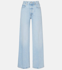 Frame creates iconic denim designs using fair manufacturing practices and sustainably sourced materials. The Collegiate jeans have a high-rise, wide-leg silhouette and feature a concealed button placket, five pockets, and belt loops. Product Details - Material: 100% cotton - Care instructions: machine wash at 30 degrees - Made in Tunisia - Designer color name: Johanna - Item color: blue - Dye: light - Pockets: five pockets - Belt loops - Closure: concealed button placket - Item number: P01099070 Size & Fit - True to size - Non-stretchy fabric - Wide-leg - High-rise - The model seen in the picture is 178cm-5'10" and wearing a size 26
