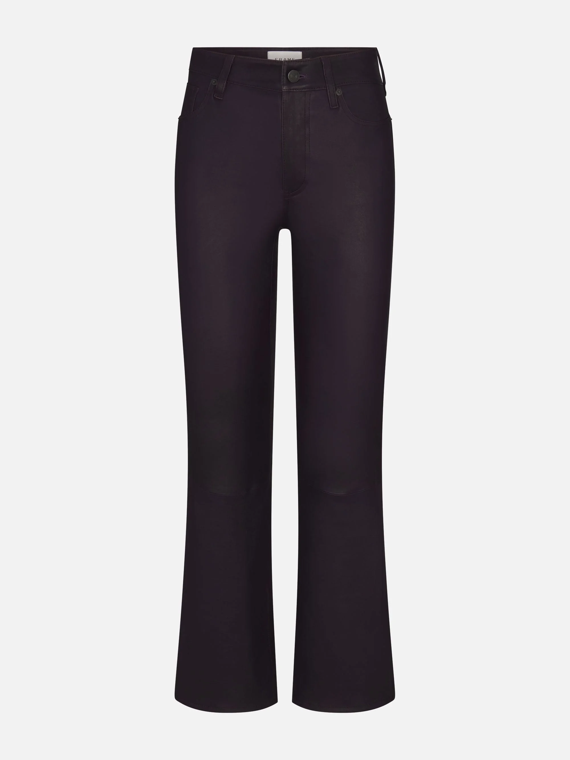 The Reboot Crop, now in soft, stretchy leather. This dark royal purple pant features a cropped inseam and soft bootcut that hits above the ankle. Wear it with a baby tee and kitten heel—or anything with edge.