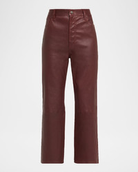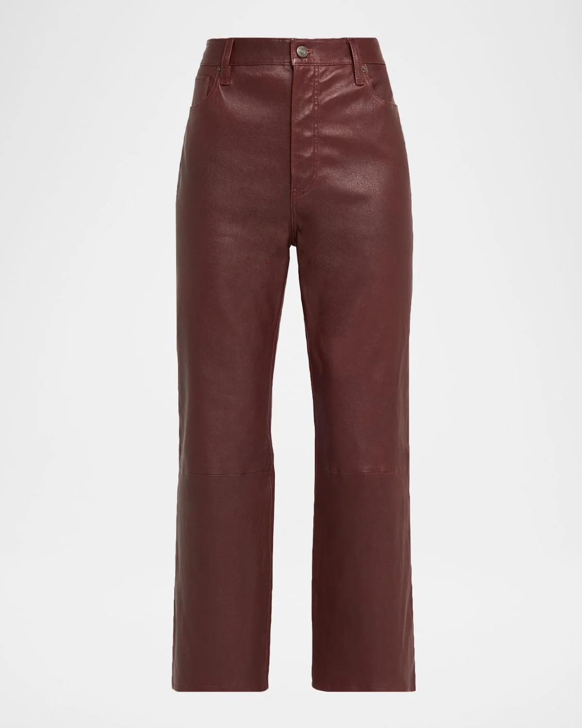 FRAME "The Leather Reboot Crop" jeans crafted from luxurious leather Approx. 11" rise; 27" inseam High rise Fivepocket style Fitted through the hip and thigh Cropped length Button/zip fly; belt loops Leather Professional cleaning recommended Imported