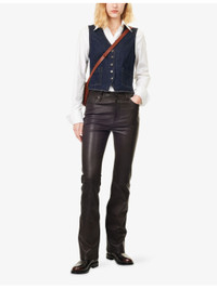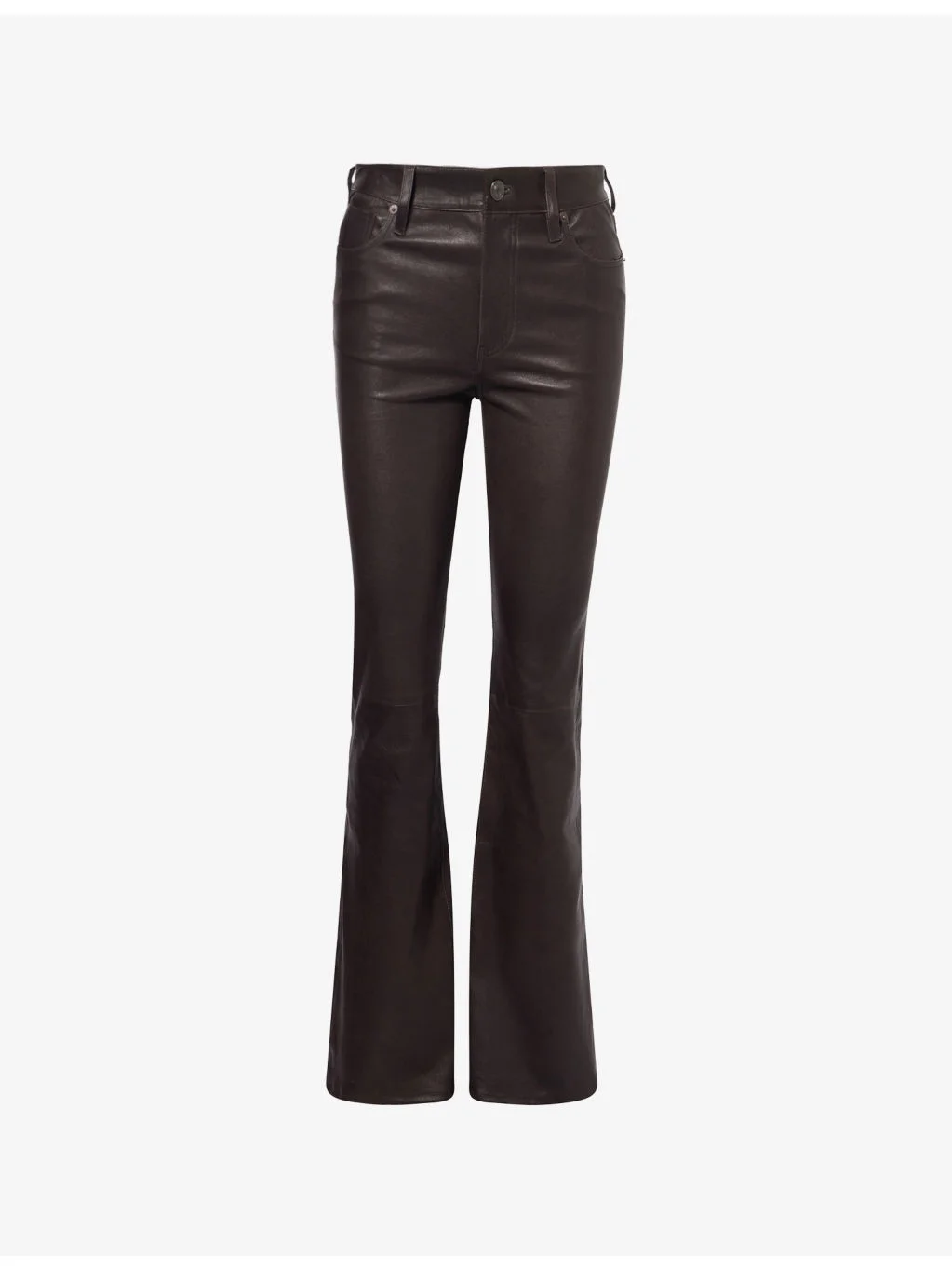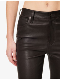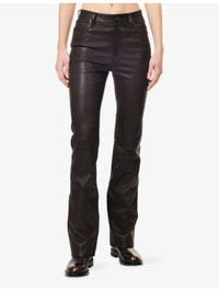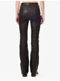 PRODUCT DETAILS - FRAME leather trousers - 100% leather - Button and zip-fly fastening - Regular fit, mid-rise, bootcut leg, structured waistband with belt loops, five pockets, smooth texture, branded hardware - Specialist leather clean - True to size - Model is 5ft 10in/1.78m and wears a size 26 - Midweight, slight stretch Ref: R04538755