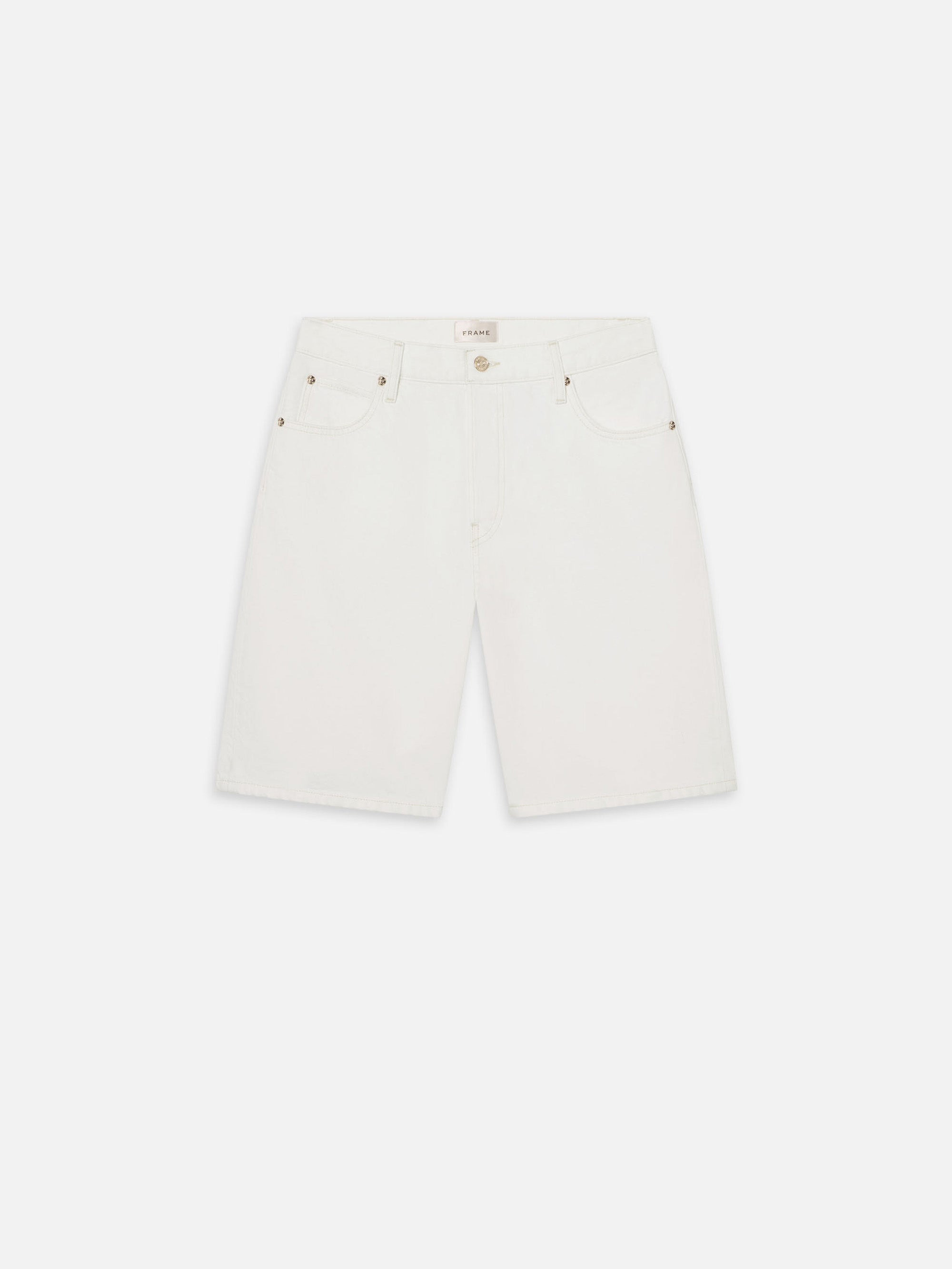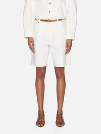 The Leisure Short makes a case for denim at the office. Mid-rise with a relaxed fit and raw hem that grazes the knee. Cut from rigid denim in Au Natural Clean—an off-white ecru wash with quiet structure. It's the pair that's smart with a blazer, and easy without. Materials & Care High Rise Fit Machine Wash Cold 100% Cotton 11.25" Front Rise/9" Inseam/21.5" Leg Opening 4004728-AUCL