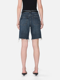 The Leisure Short makes a case for denim at the office. Mid-rise with a relaxed fit and raw hem that grazes the knee. Cut from rigid denim in Nostalgia—a clean, medium-dark wash with quiet structure. It's the pair that's smart with a blazer, and easy without. Materials & Care High Rise Fit Machine Wash Cold 100% Regenerative Cotton 11.25" Front Rise/9" Inseam/21.5" Leg Opening 4004RF210-NSTL