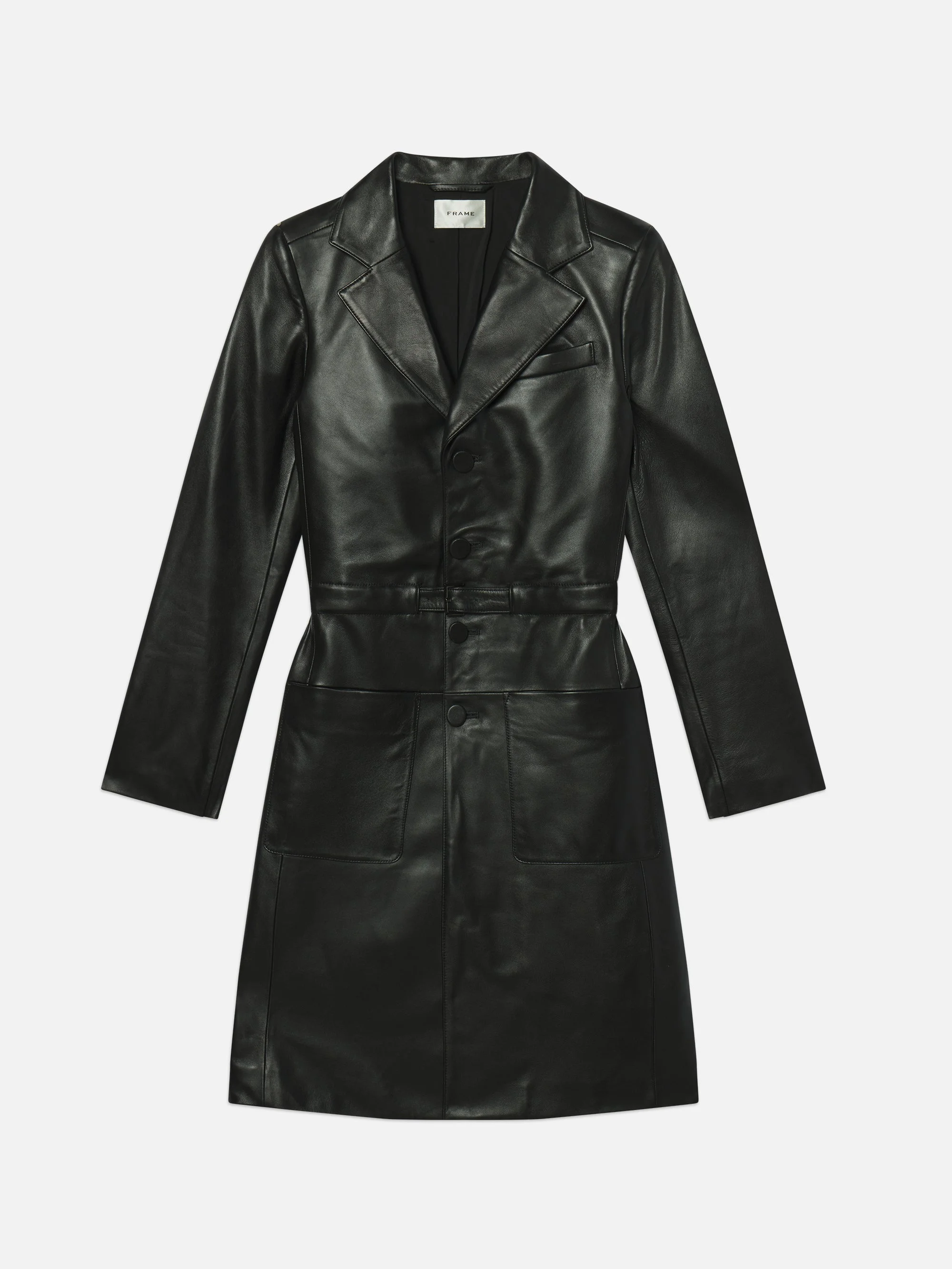 Structure meets softness in this long, leather jacket. With a self-belt feature that hugs the waist and creates an hourglass shape. A sexy, wear-everywhere jacket that dresses up jeans and exudes a quiet confidence. Materials & Care Clean Professionally By A Leather And Suede Specialist 100% Leather 40" Long From Shoulder WF25LJA008-BLK