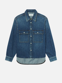 Cut from non-stretch denim, this button-down has an exaggerated shirttail hem for easy layering. Wear it buttoned up or open over knits and tanks. Materials & Care Machine Wash Cold 80% Cotton/20% Post Consumer Recycled Cotton 24" Long From Shoulder/44.5" Hem Width 7016216-WAND