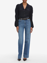 Our bestselling Sailor Blouse gets long sleeves. A soft, feminine top, crafted from pure silk. Elevated and endlessly wearable. Materials & Care Dry Clean Only 100% Silk 22.375" Long From Shoulder WF25WBL017-NAVY