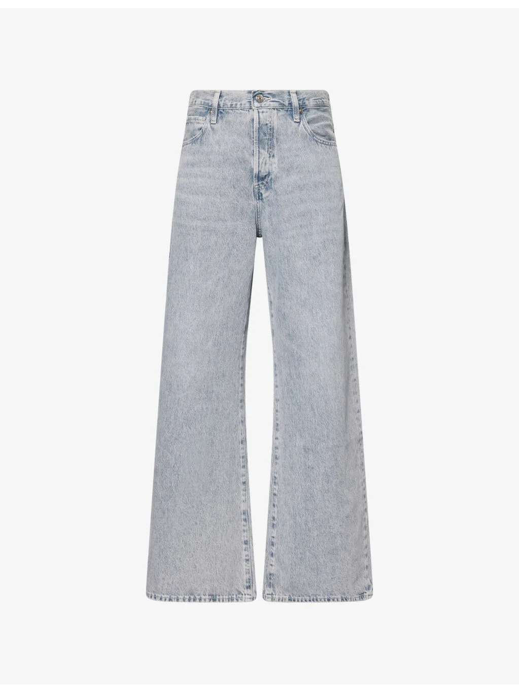 PRODUCT DETAILS - FRAME denim jeans - 100% cotton - Button and button-fly fastening - Relaxed fit, mid-rise, wide leg, structured waistband with belt loops, five pockets, faded wash, branded hardware - Machine wash cold - True to size - Size 26: rise 12.5in / 32cm, inside leg 32in / 81cm, leg opening 24in / 61cm - Model is 5ft 10in/1.78m and wears a size 26 - Midweight, non-stretch Ref: R04509255