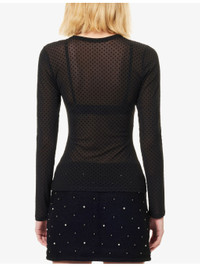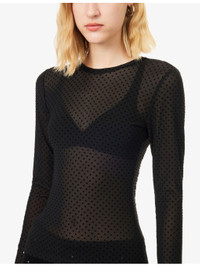 PRODUCT DETAILS - FRAME mesh top - 94% polyamide, 6% elastane - Slim fit, round neck, long sleeves, flocked polka-dot pattern, sheer - Machine wash cold - True to size - Model is 5ft 10in/1.78m and wears a size small - Lightweight, stretchy Ref: R04538768