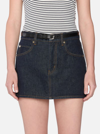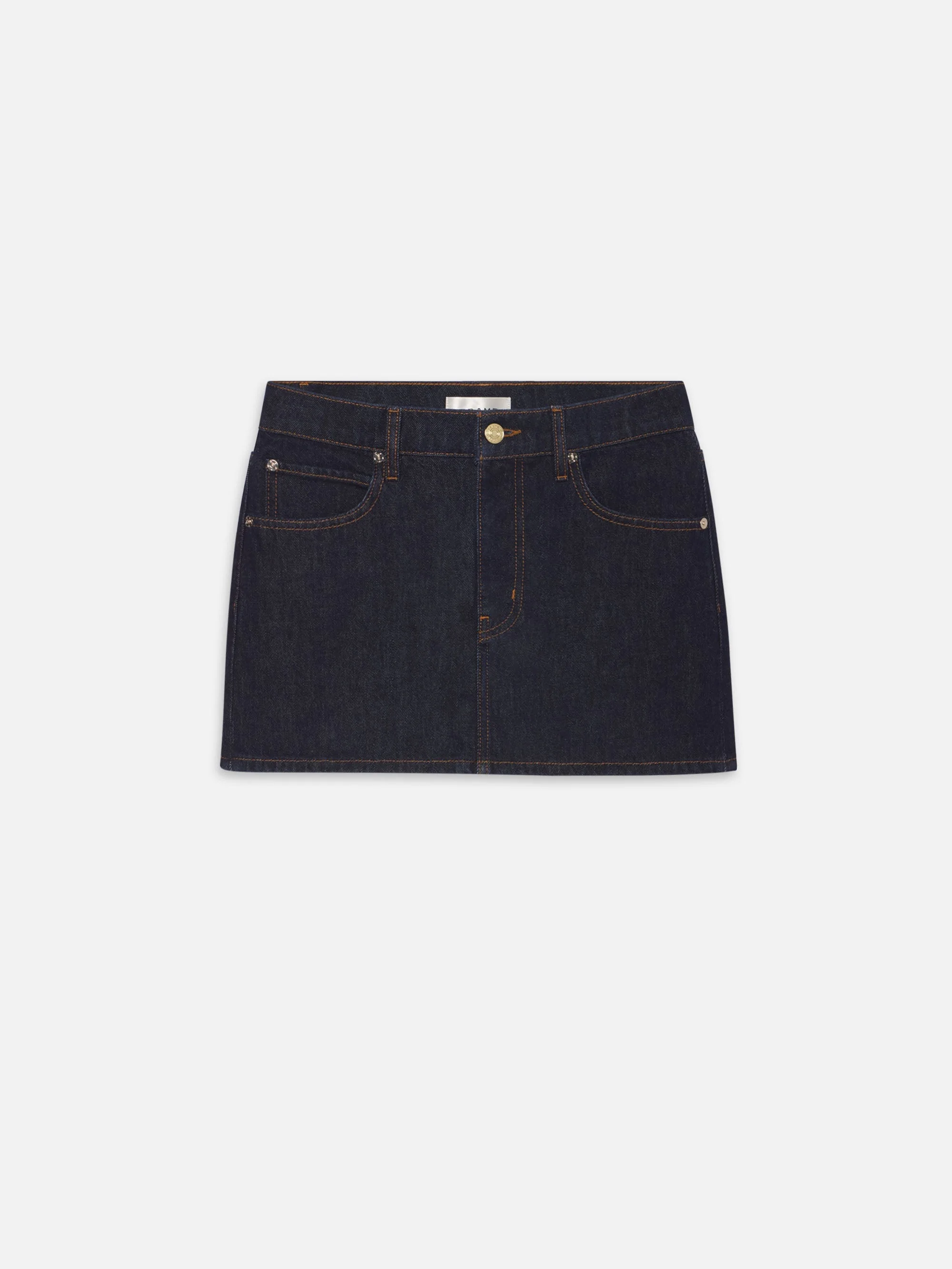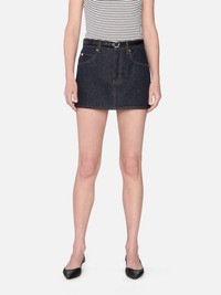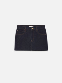A-line and mid-rise in rigid dark denim, this true mini features 5-pocket styling, a raw hem, and subtle curve through the hips. As a nod to the '90s, wear it with a tee, crisp shirt, or soft knit. Materials & Care Mid Rise Fit Machine Wash Cold 100% Regenerative Cotton 11.25" Long From Waist/41.5" Leg Opening 5003210-RINS