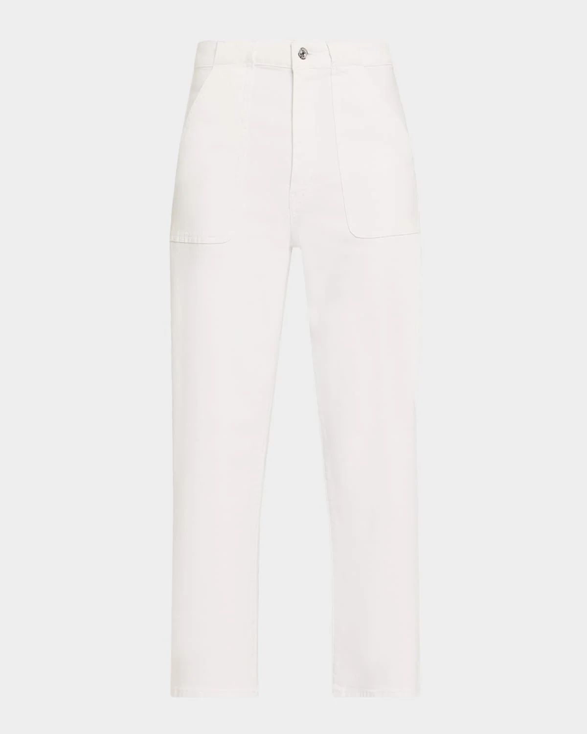 - FRAME "The Modern Pocket Wide" jeans in crisp white stretch denim - Approx. 11.8" rise; 27.5" inseam - High rise - Front and back patch pockets - Wide legs - Cropped length - Button/zip fly; belt loops - Cotton/elastane - Machine wash cold inside out; lay flat to dry - Imported