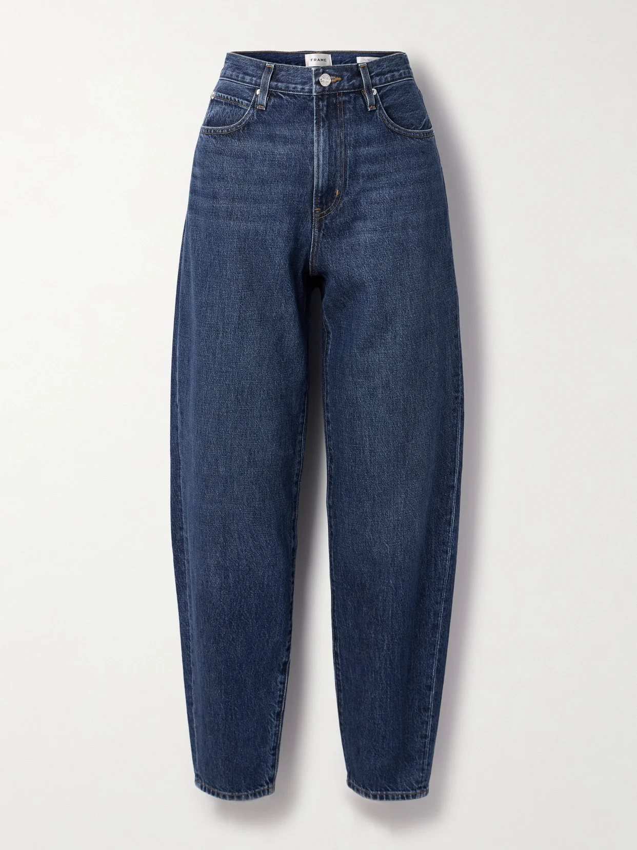 A nod to the '80s; FRAME's 'The Narrow' jeans are a fresh take on the popular barrel-leg trend. They're cut from denim in an inky 'Kirk' wash and have a high-rise. Lower-Impact Materials. This product is made using at least 50% lower-impact materials or ingredients. Find out more about our NET SUSTAIN criteria here.