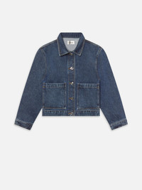 Tell your friends—it has pockets. This chic denim jacket comes equipped with everyone's favorite feature: two oversized patch pockets on either side. This piece is as versatile as your favorite pair of denim, featuring a crisp collar and a rich shade of blue. Materials & Care Machine Wash Cold 100% Regenerative Cotton 21.5" Long From Shoulder39.5" Leg Opening 002DJA105-NBLE