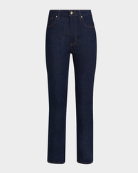 - FRAME "The Pencil" jeans in faded light-wash denim - Approx. 11.3" rise; 27" inseam - Mid-rise; sits high on the hip - Five-pocket style - Slim, straight legs - Full length - Button/zip fly; belt loops - Cotton/polyester/lyocell - Machine wash warm; dry flat - Imported