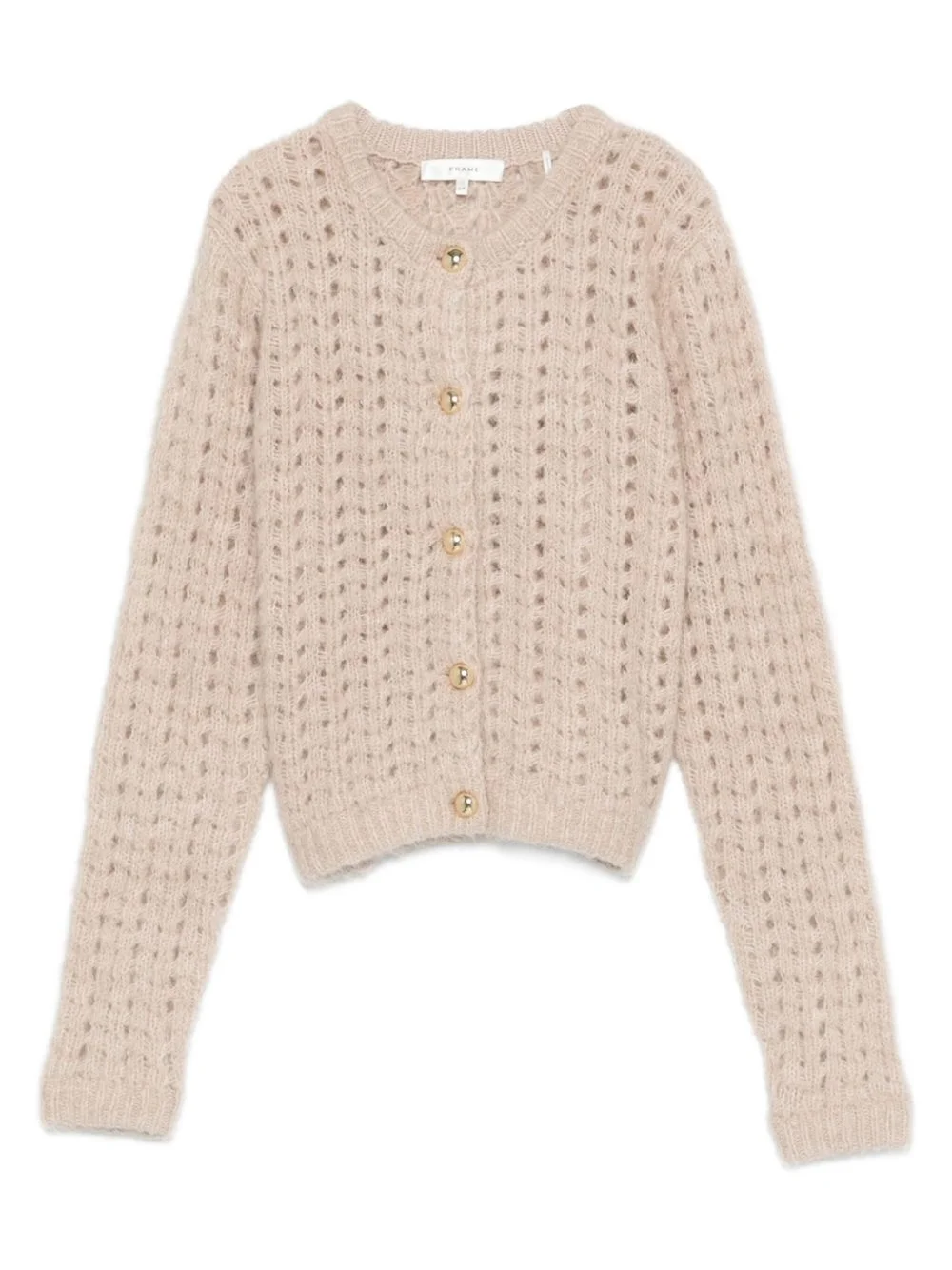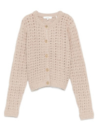 cable-knit cardigan Highlights - Beige - Wool - Front button fastening - Open knit - Long sleeves Imported Composition Wool 100% SIZE & FIT Model measurements Height 5 ft 10 in(1.78 m) Bust/Chest 31.49 in(80 cm) Hips 37 in(94 cm) Waist 23.62 in(60 cm) Washing instructions Read Manufacturer Guidelines