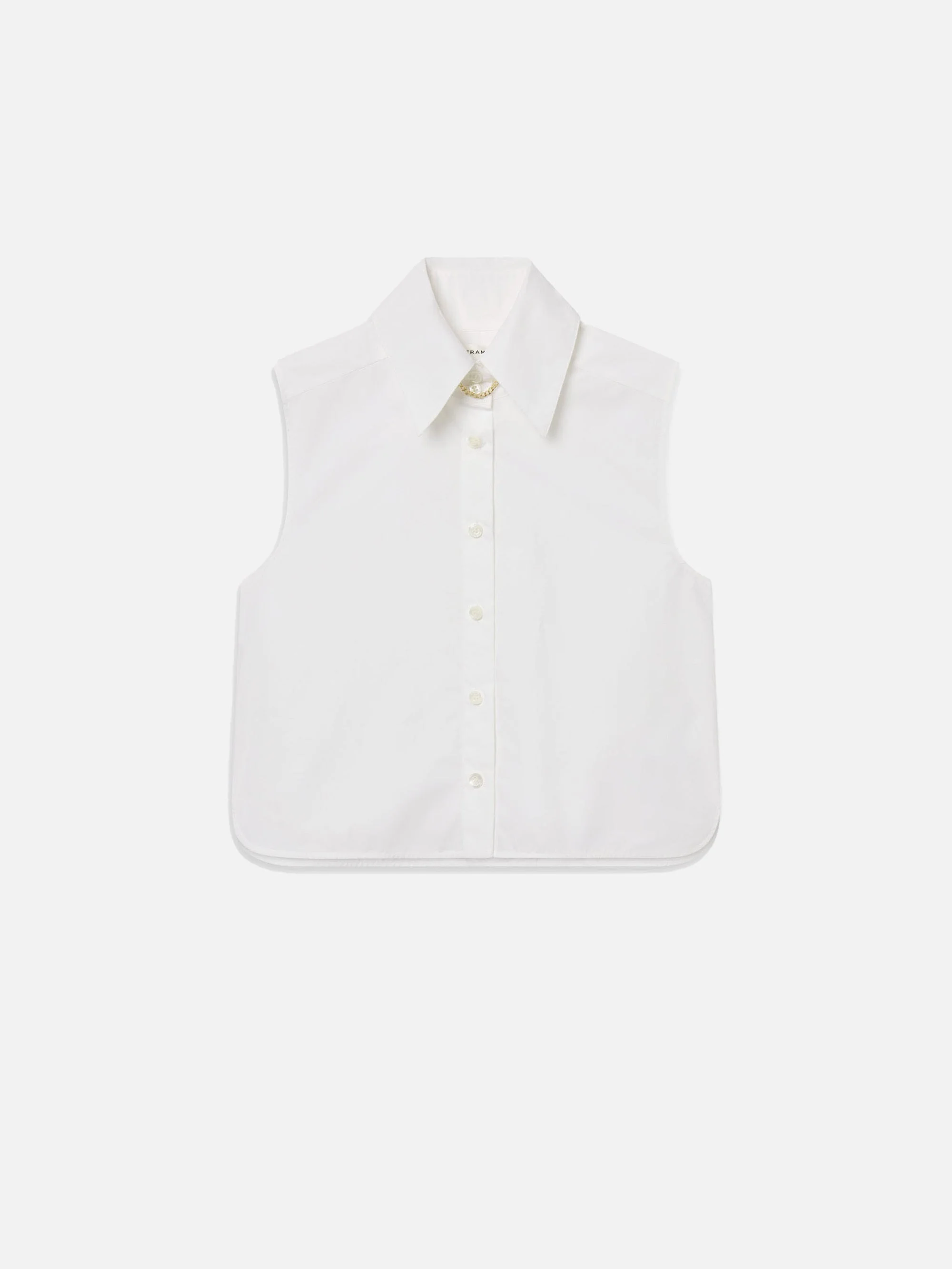 This cotton poplin shell is a modern take on a classic, set apart by the gold chain detailing at the neck. It has a shirttail hem, back pleating and an elongated collar. Materials & Care Machine Wash Cold 100% Cotton 20" Long From Shoulder WF25WSH014-WHT