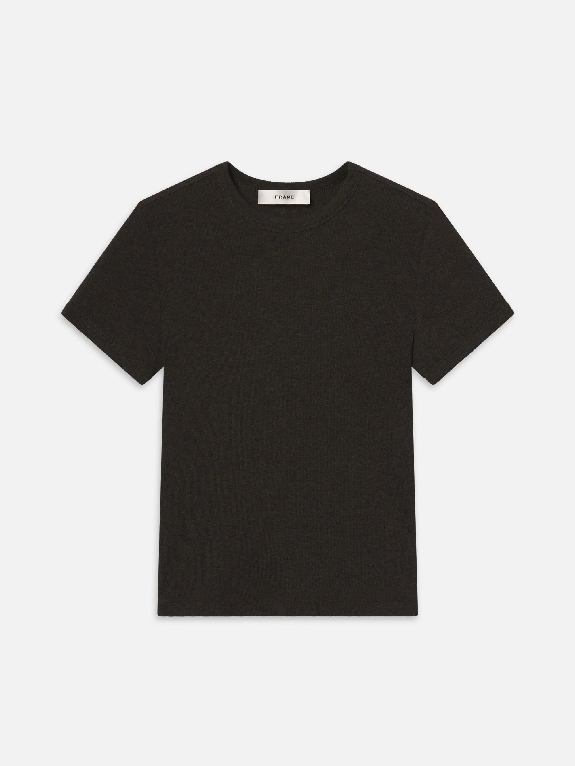 Soft and stretchy, this baby tee enhances your go-to everyday t-shirt with fine ribbed trim. Cut to a slightly shrunken fit, you can pair it with denim for a chic, fuss-free uniform. Materials & Care Hand Wash Cold 96% Modal/4% Spandex 21" Long From Shoulder WE24JKT015-CFFE