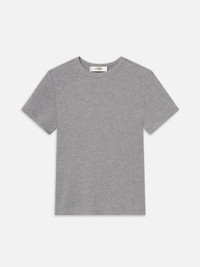 Soft and stretchy, this baby tee enhances your go-to everyday t-shirt with fine ribbed trim. Cut to a slightly shrunken fit, you can pair it with denim for a chic, fuss-free uniform. Materials & Care Hand Wash Cold 96% Modal/4% Spandex 21" Long From Shoulder WF25JKT012-HGRY