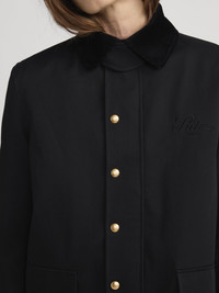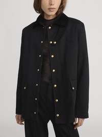 Inspired by classic British fieldwear and reimagined through a Parisian lens, this FRAME x Ritz Paris Hunting Jacket is crafted from a high end cotton fabric with a soft contrast collar, polished brass hardware, and jacquard “Ritz” logo lining. Tailored yet relaxed, it’s the perfect balance of sophistication and utility for everyday wear. DETAILS - Dry Clean Only - 100% Cotton - 29" Long From Shoulder - WP26WJA009-BLK