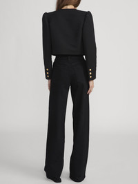 Structured yet feminine, this FRAME x Ritz Paris jacket is crafted from textural suiting fabric and detailed with sculpted shoulders and dual rows of gold crest buttons. A modern interpretation of classic Parisian tailoring designed to elevate every look. DETAILS - Dry Clean Only - 100% Cotton - 18.25" Long From Shoulder - WP26WJA008-BLK