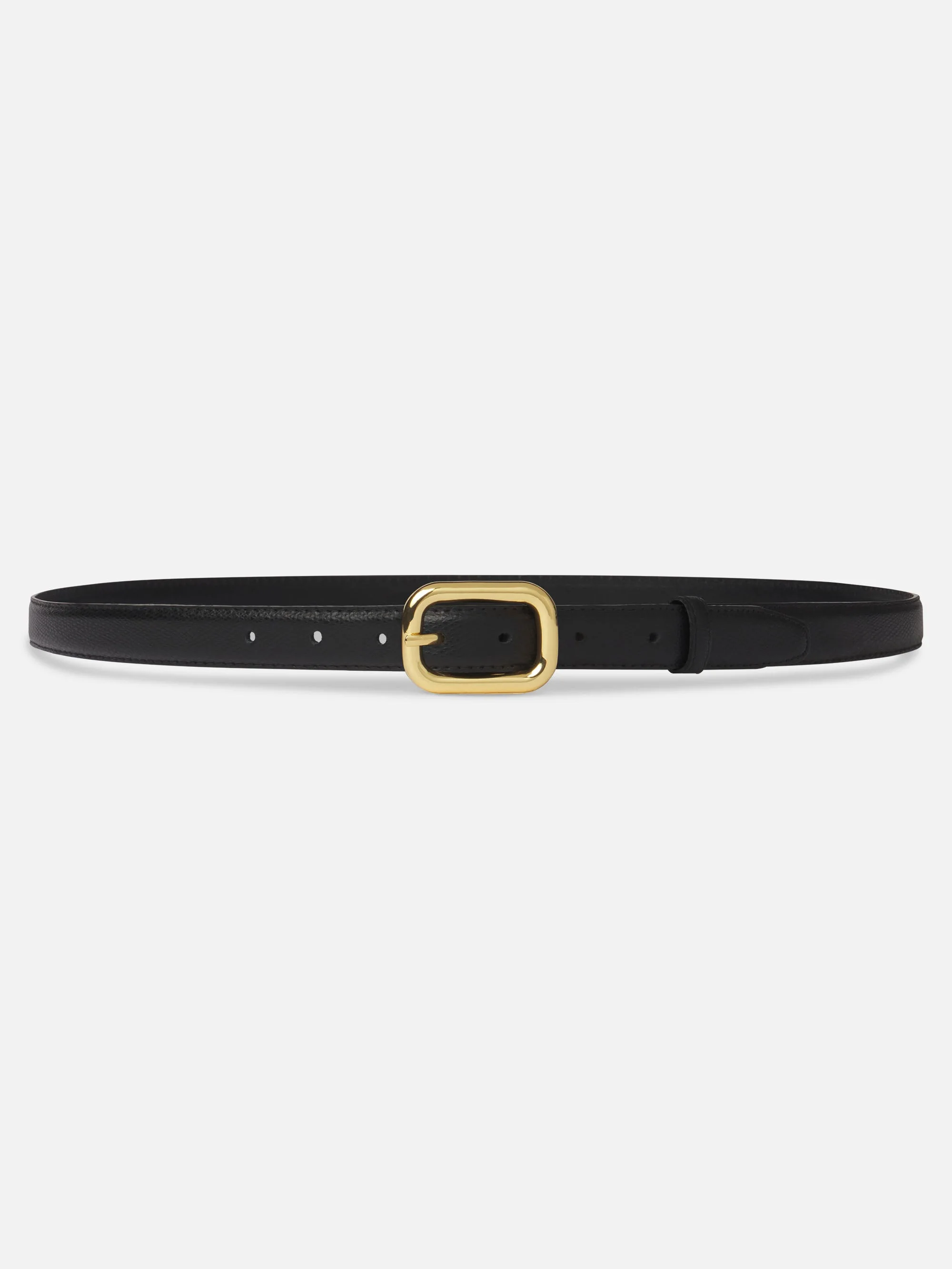 The Rounded Buckle Belt is crafted from 100% pebbled cow leather and finished with an oval buckle. DETAILS - Wipe Clean. Do Not Wash - 100% Cow Leather - WP26ABT001-BLK
