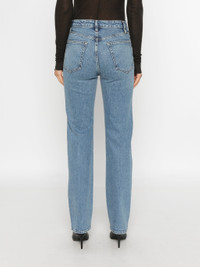 indigo blue cotton blend washed denim front button and zip fastening high-waisted belt loops classic five pockets whiskering effect at the thighs straight leg - Color: BLUE - Made in: Turkey - Designer Style ID: WP25DPA001 INDO Composition and care Cotton: 99.0%, Elastane: 1.0%