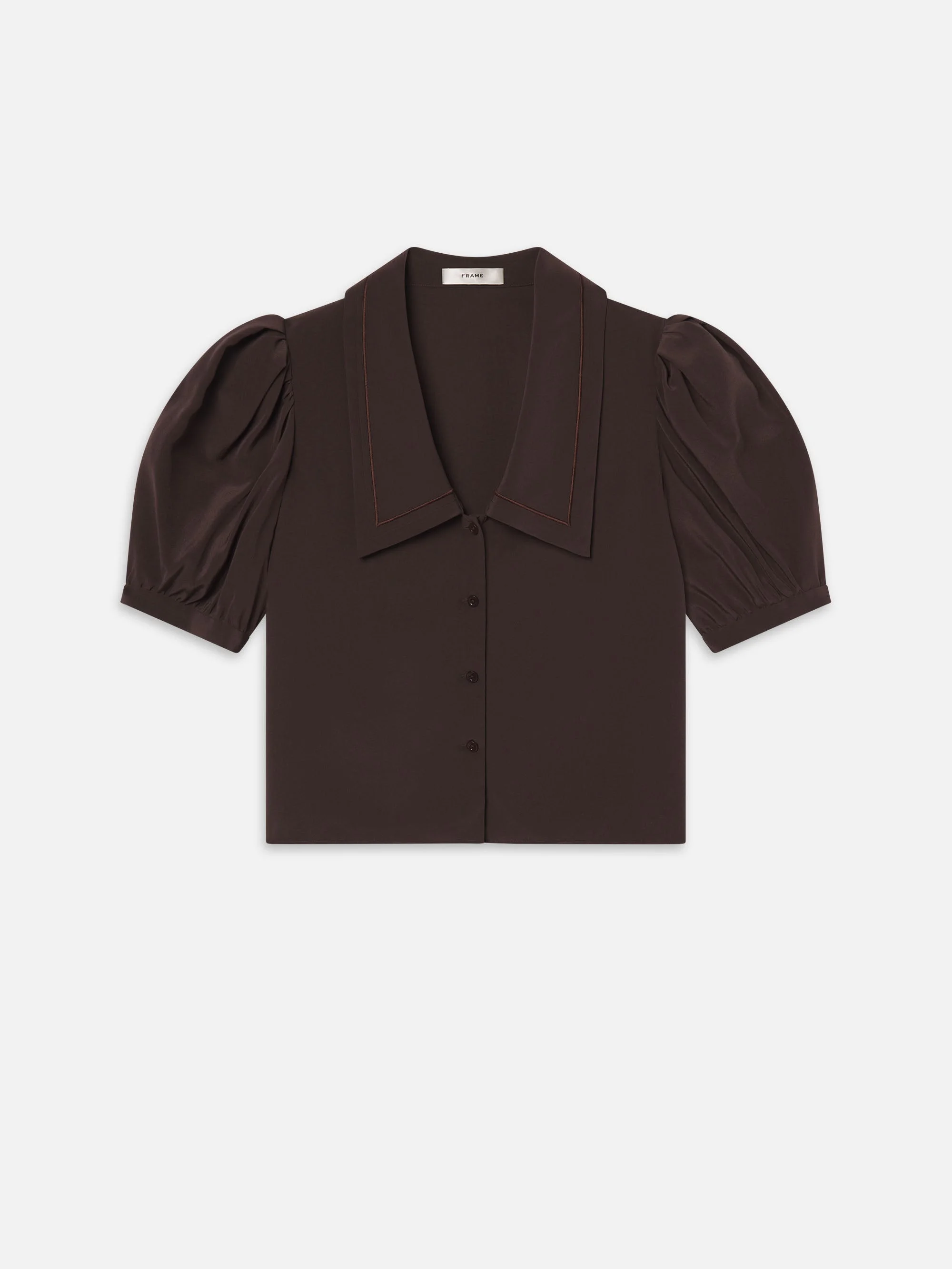 Our bestselling sailor blouse, now in rich coffee-colored silk. With slightly puffed sleeves for a feminine feel. Soft, elevated, and endlessly wearable. Materials & Care Dry Clean Only 100% Silk 22.375" Long From Shoulder WE24WBL022-CFFE