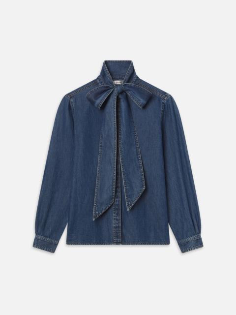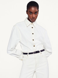 Featuring a tailored silhouette with dramatic sculptural sleeves, The Sculpted Shirt elevates denim shirting. Crafted from 100% cotton rigid denim for a luxurious look and feel and finished with gold snap buttons. Materials & Care Dry Clean Only 100% Cotton 26.0" Long From Shoulder WP25DWT007-AUCL