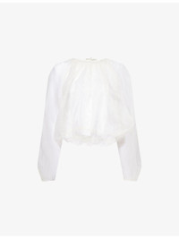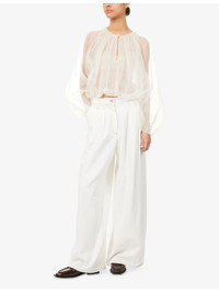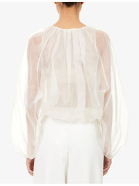PRODUCT DETAILS - FRAME silk blouse - 100% silk - Button fastening - Voluminous fit, long sleeves, elasticated cuffs and hem, round neck, cut-out keyhole at neckline, double-layered sheer silk - Dry clean - True to size - Model is 5ft 10in/1.78m and wears a size small - Lightweight, non-stretch Ref: R04595959