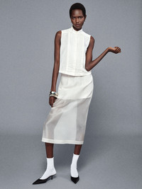 Sculpted in silk, this lustrous skirt is tailored to a timeless pencil silhouette in creamy alabaster. The seamless design has a beautiful drape, forming an elegant base that can be dressed up or down for every occasion. Materials & Care Dry Clean Only 100% Silk 33" Long From Waist WS25WSK002-ABST