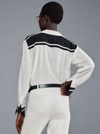 Black and white feel more sophisticated in silk. Case in point, The Silk Pajama Shirt. A perfectly loose-fitting button-up with a notched collar and black contrast detailing at the cuffs and back panel. Make it a set with The Silk Pajama Pant for effortless outfitting. Materials & Care Dry Clean Only 100% Silk 26" Long From Shoulder WS25WSH020-ABMT