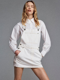 Part skirt, part overall, all ease. The Skirtall is cut from rigid ecru denim with trouser-style pockets, adjustable straps, and a mini length made for sun-soaked days. An unexpected warm-weather staple that nods to nostalgia and layers with ease. Materials & Care Machine Wash Cold 100% Cotton 24" Long From Shoulder42" Leg Opening 6006728-AUCL