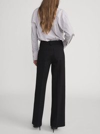 Our bestselling Slim Palazzo silhouette, reimagined as the perfect wear-to-work pant. Crafted from luxe Italian stretch ponte and finished with front patch pockets, elevated gold buttons and crisp pleats. The ideal blend of comfort and polish for the office and beyond. Materials & Care High Rise Fit Dry Clean Only 69% Viscose/27% Polyamide/4% Elastane 11" Front Rise/31" Inseam/22.5" Leg Opening WP26WPA020-BLK
