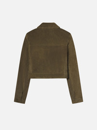 Our best-selling jacket, now in soft suede for the season. The Small Suede Jacket keeps it clean with a cropped, boxy fit, tonal patch pockets, and suede-covered buttons—all done in olive green. Martini optional, but encouraged. Materials & Care Clean Professionally By A Leather And Suede Specialist 100% Cow Suede 19" Long From Shoulder WS25LJA003-CYPR